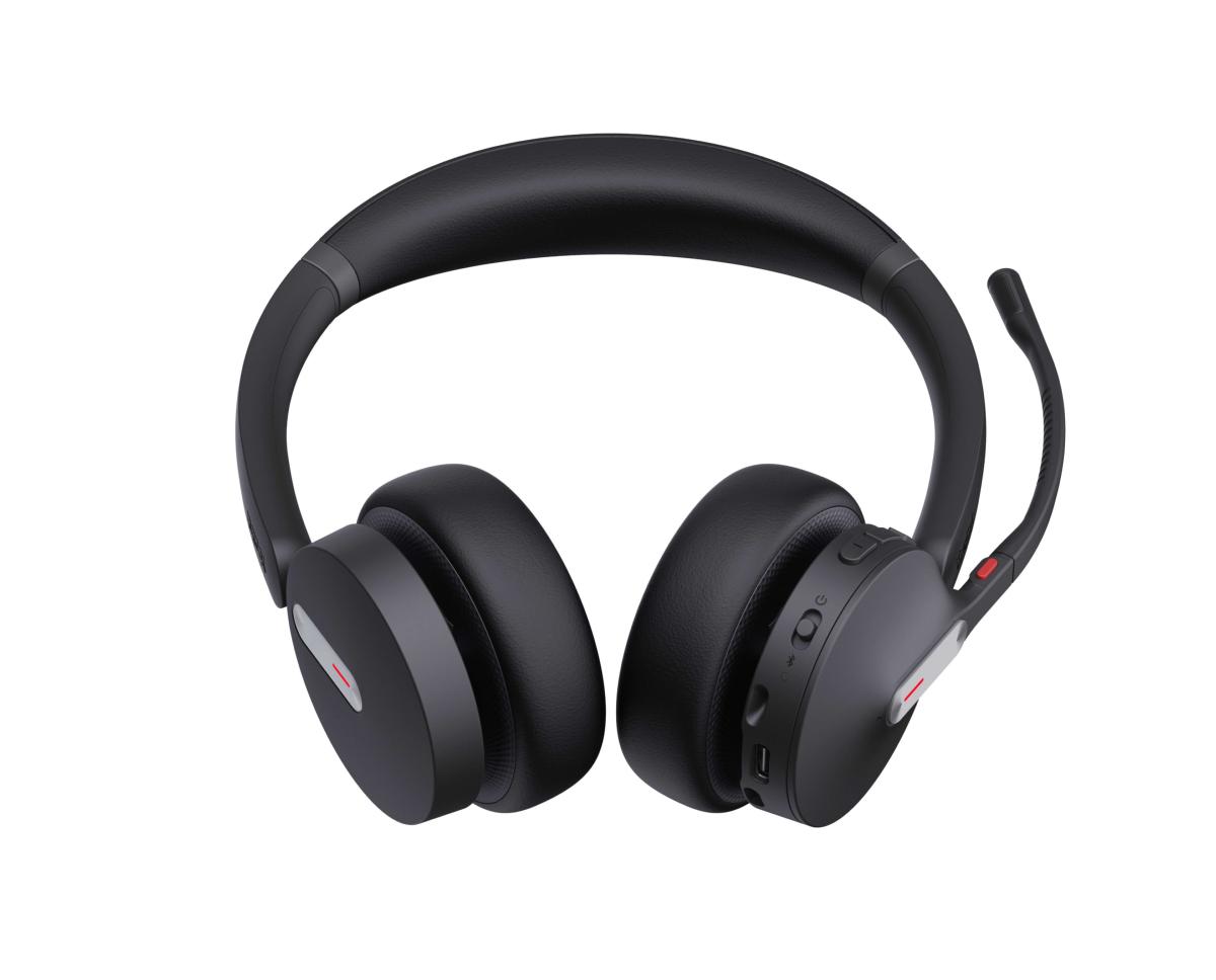 Casque téléphonique stéréo confortable avec 2 oreillettes en simili cuir, autonomie jusqu'à 35 H, connexion Bluetooth jusqu'à 50 m. Livré avec dongle BT51, cordon USB-A/C. Pour communications unifiées, certifié pour Teams.