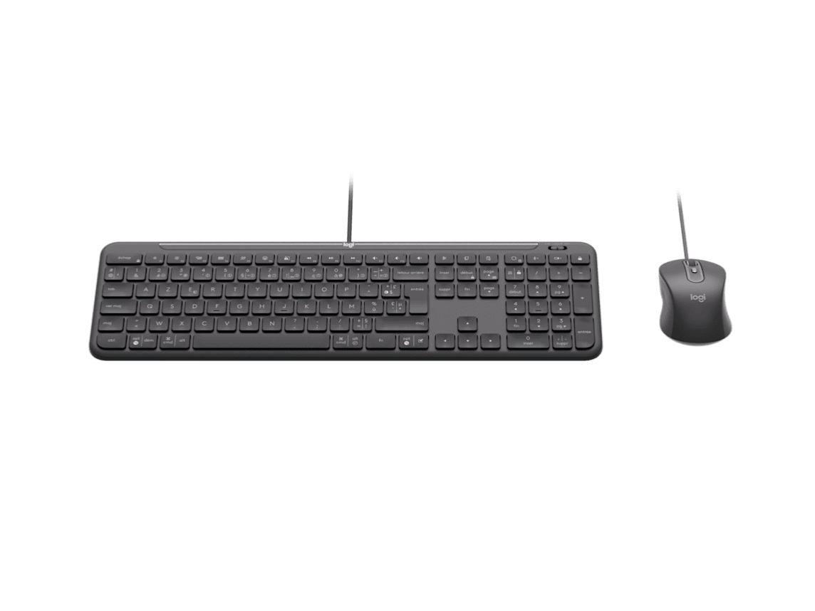 Ensemble 1 clavier azerty FR et souris optique 4 boutons avec connexion filaire en USB-C. Fabriqués en aluminium et plastique recyclé à faible empreinte carbone. Compatibilité Windows et Mac OS