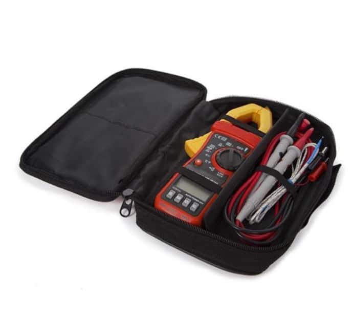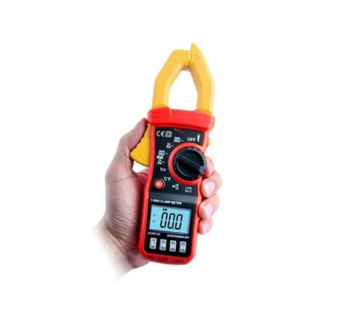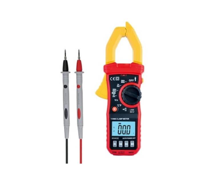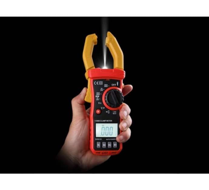 Pince pour mesurer l'intensité du courant électrique alternatif sans ouvrir le circuit, fonctions de multimètre digital avec mesure de tension, de résistance et de continuité. Robuste et équipée d'une torche à LED.