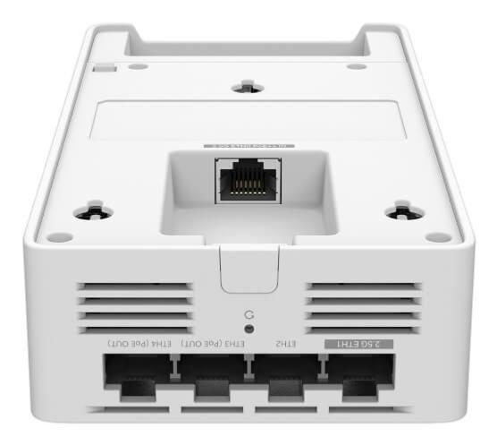 Point d'accès de type boitier mural pour l'intérieur avec WiFi 7 ax/be tri-bande 9300 Mbps, 2 ports RJ45 2,5 gigabits, 3 ports RJ45 gigabit dont 2 ports PoE out, mode autonome ou managé avec Omada, itinérance transparente, fonction mesh
