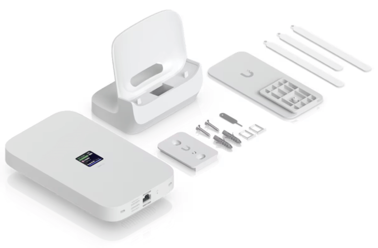 Modem Routeur Ubiquiti avec 1 port RJ45 2,5 gigabit, double SIM et eSIM. Supporte les réseaux mobiles 5G, NR, 4G LTE et 3G UMTS. Gestion avec UniFi Network